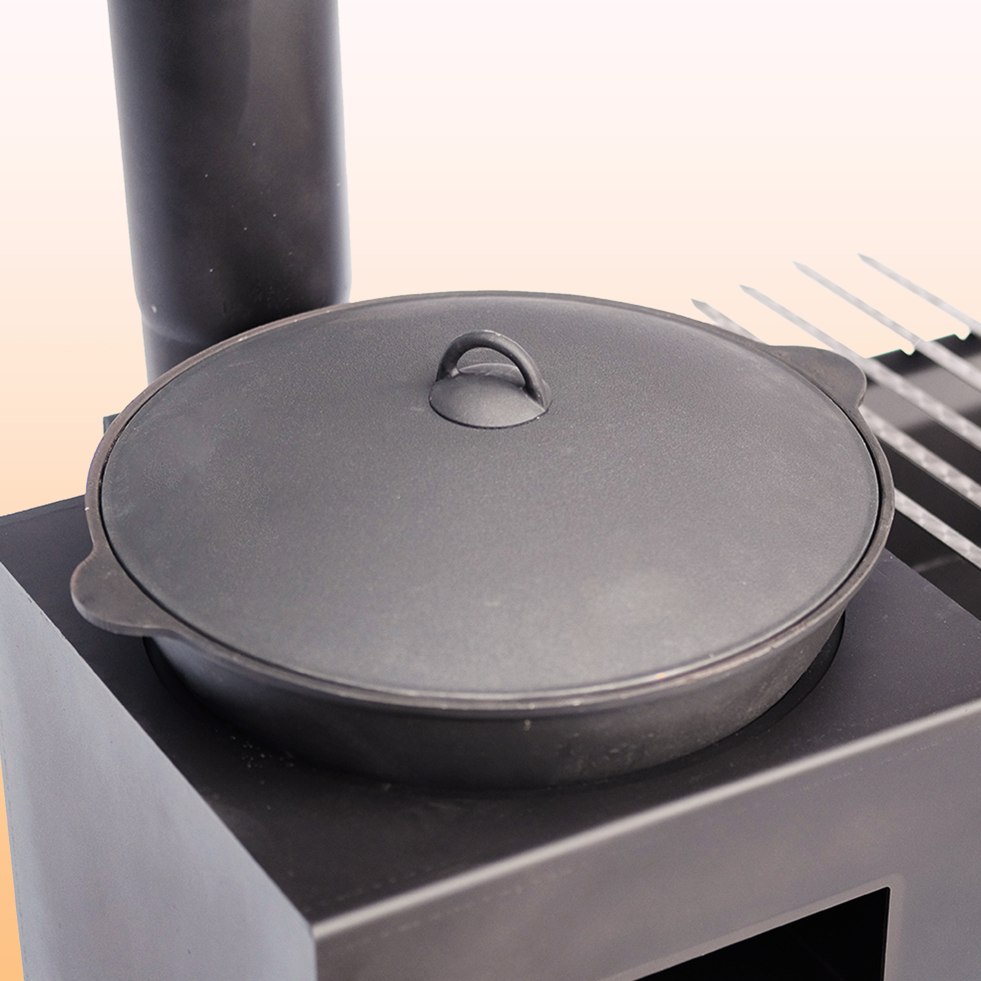 Также вы можете дооснастить казан-мангал универсальной коптильней, что расширит диапазон приготавливаемых блюд.